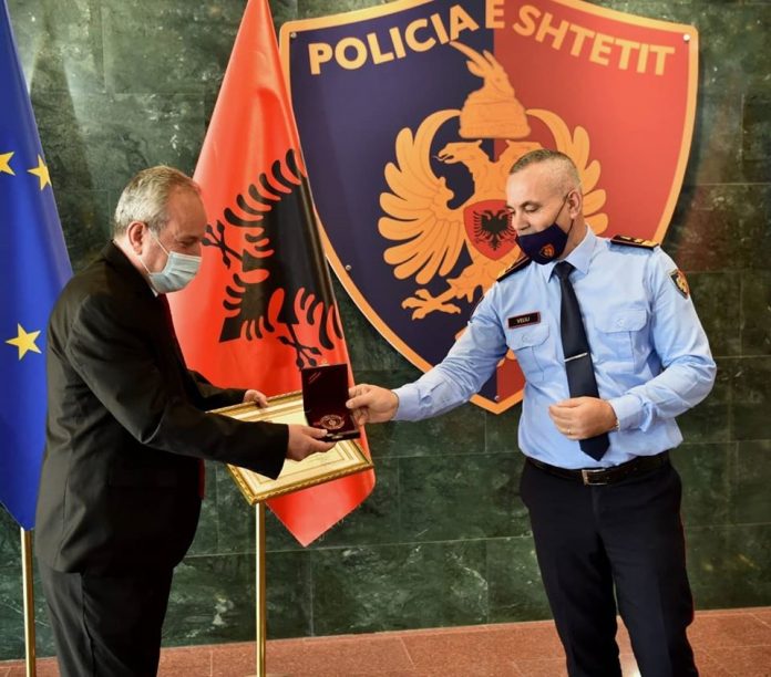 Drejtori i përgjithshëm i Policisë së Shtetit, Ardi Veliu i ka akorduar certifikatë “Për shërbime të dalluara”, drejtuesit Besnik Bakiut.