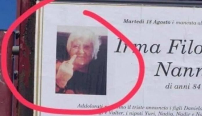 Fotoja e vërtetë e lajmërimit të vdekjes së Irmës, e cila ndërroi jetë në moshën 84-vjeçare në Rimini të Italisë, habiti jo pak njerëz.