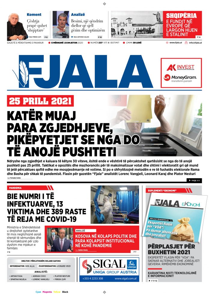 Gazeta Fjala, e mërkurë 23 dhjetor 2020