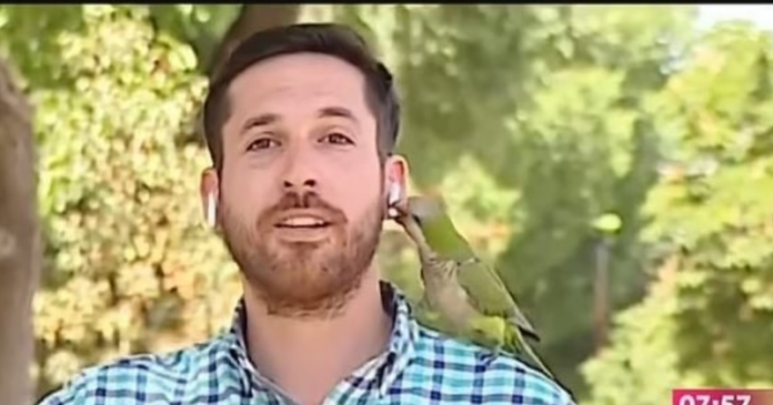 “Sapo më mori kufjen”, tha ai. Ai shpjegoi më pas në studio: “Ne po bënim një transmetim mesdite dhe ndjeva diçka pranë meje dhe kuptova se ishte një papagall. U përpoqa të lajmëroja kameramanin sepse ishte piktoreske dhe mendova se nuk ishte diçka që ndodh çdo ditë.