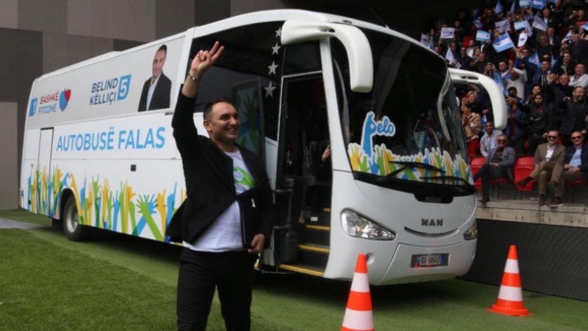 Ditën që nisi fushata zgjedhore dhe po bëhej prezantimi i kandidatëve të koalicionit “Bashkë Fitojmë”, kandidati për Bashkinë e Tiranës, Belind Këlliçi, hyri në stadiumin “Air Albania” me një autobus.