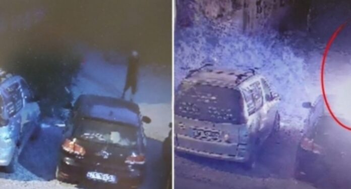 Dalin pamje nga momenti kur autori i ka vënë flakën tre makinave gjatë natës në lagjen “Pavarësia” në Vlorë.