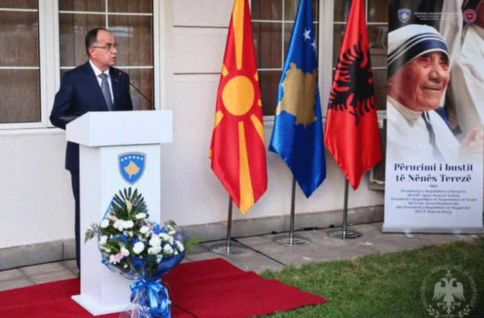 Presidenti Begaj merr pjesë në inaugurimin e bustit të Nënë Terezës në Ambasadën e Kosovës në Shkup