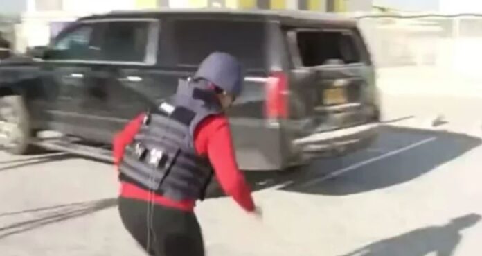 Ajo dhe grupi i saj më pas shihen duke vrapuar nga vendi i ngjarjes drejt një Jeep-i të zi të parkuar aty pranë, përpara se transmetimi të ndërpritet./ S.M