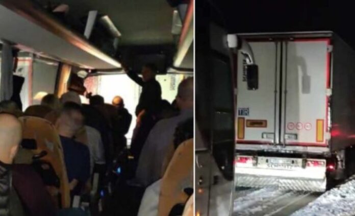 100 qytetarë nga Selaniku, të cilët donin të kalonin festat e Krishtlindjeve në Vjenë mbetën të bllokuar për 17 orë brenda një autobusi në mes të një stuhie dëbore.