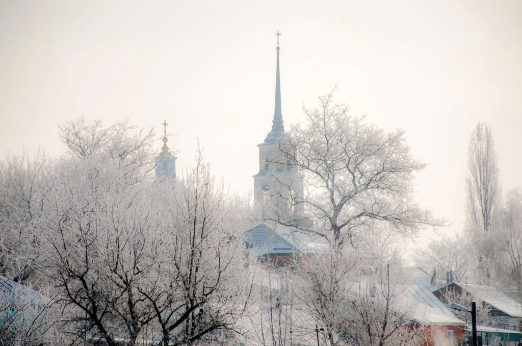 Nga shtrati i lumit shihen kupolat e arta të kishave ortodokse, ndërsa në pjesën tjetër peshkatarët që janë të shpërndarë përgjatë sipërfaqes së ngrirë. Por kjo ndjesi përrallore është kalimtare…