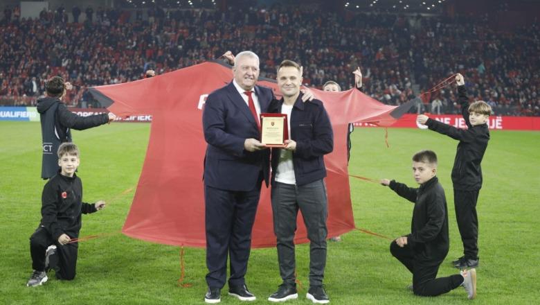 Pas 51 ndeshjeve të luajtura me Kombëtaren, 35-vjeçari Amir Abrashi i ka dhënë lamtumirën ekipit kuqezi. Ai u nderua nga FSHF para ndeshjes me Anglinë dhe u përshëndet nga tifozët.