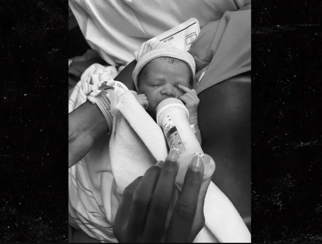 Në mënyrë specifike, ajo publikoi një fotografi ku mban në krahë djalin e sapolindur të çiftit, ndërsa e ushqen me biberon.