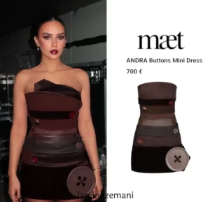 Moderatorja ka veshur një fustan të shkurtër në ngjyrë kafe, shoqëruar me detajet e kopsave, të cilat duken se do të kthehen shumë shpejt në një trend.