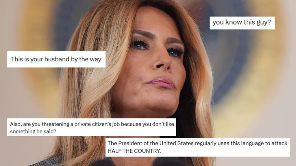 Zonja e Parë postoi gjithashtu në X se “njerëz si Kimmel nuk duhet të kenë mundësinë të hyjnë në shtëpitë tona çdo mbrëmje për të përhapur urrejtje”.