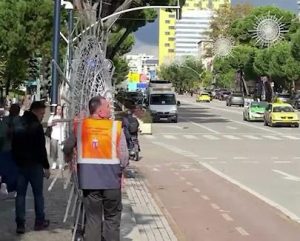 Ditën e sotme, që në orët e para të mëngjesit, punonjës të kësaj ndërmarrje janë parë në bulevardin kryesor të Tiranës duke vendosur zbukurimet në pemë dhe shtylla. / K.M
