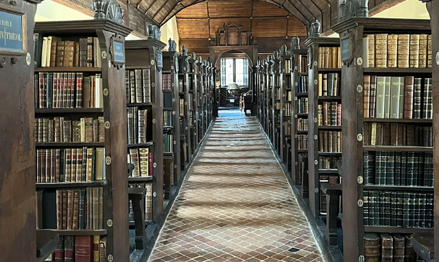 Sot, vetëm disa vëllime në bibliotekë janë të lidhura me zinxhirë, thjesht për qëllime ekspozimi. Dhe librat e mbetur tani janë vendosur në mënyrë moderne me kopertinën jashtë. Por përndryshe, dhoma mesjetare mbetet një kapsulë kohore e jashtëzakonshme e historisë së bibliotekës. Pranë hyrjes, vizitorët mund të shohin edhe arkën e shekullit të 13-të.