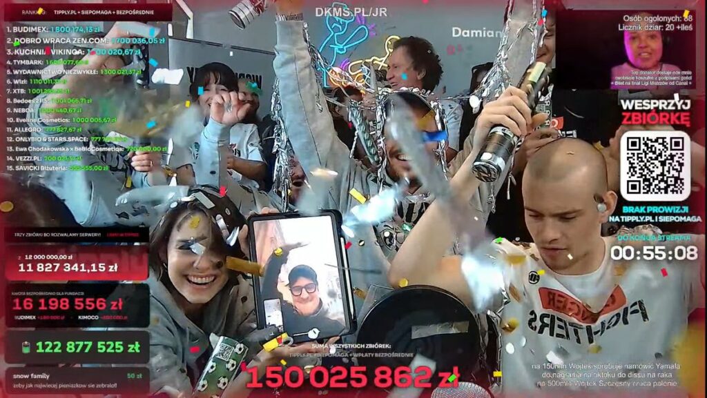Siç shkruan BBC, ky transmetim, i realizuar nga një apartament në Varshavë dhe i ndjekur nga miliona shikues, u mbështet nga figura të njohura ndërkombëtare, mes të cilëve përmendim këngëtarin e grupit të njohur britanik Coldplay Chris Martin si dhe ish-portierin e Arsenalit, Wojciech Szczęsny.