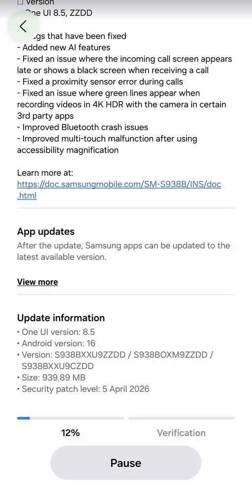 Gjithashtu zgjidh gabimin e sensorit të afërsisë gjatë thirrjeve. Videot 4K HDR të regjistruara në serinë Galaxy S25 duke përdorur aplikacione të caktuara të palëve të treta kanë futur vija jeshile, dhe ky gabim është zgjidhur gjithashtu.