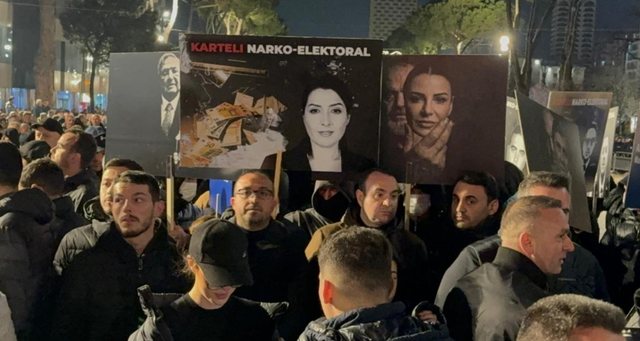 Protestuesit shfaqen duke mbajtur pankarta me mesazhe të drejtpërdrejta kundër Belinda Ballukut.