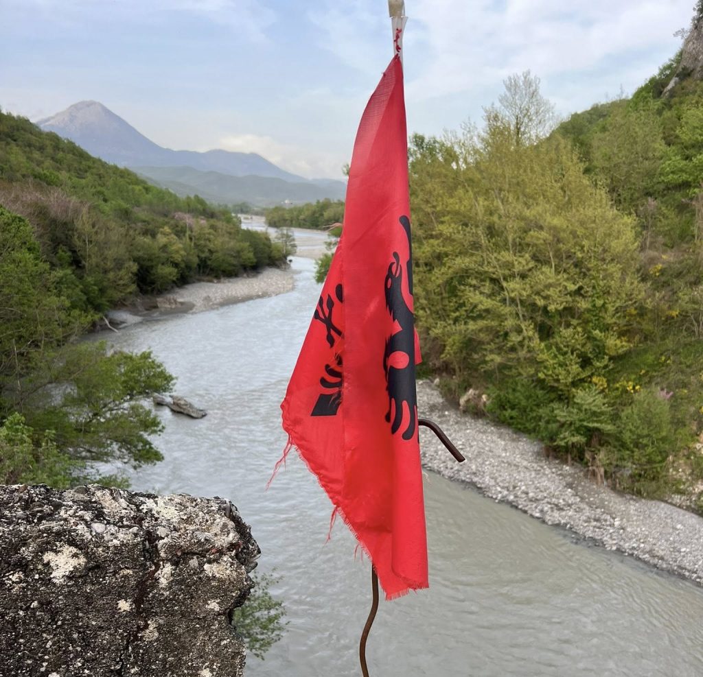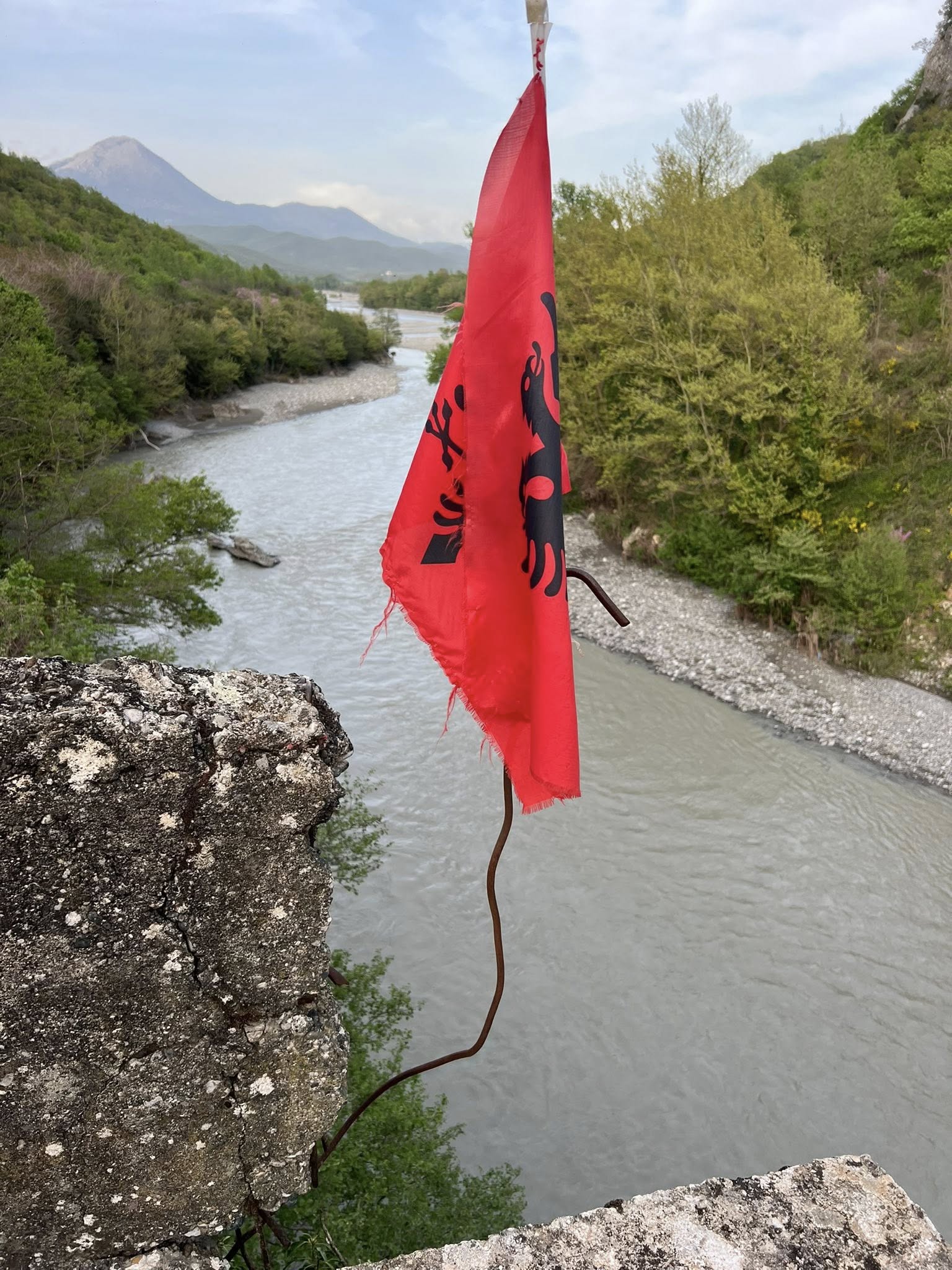 Ndërsa shqiptarët, në anën tjetër të lumit, kanë ngulur një flamur të shqyer, mbi një hekur të ndryshkur dhe të shtrembër.