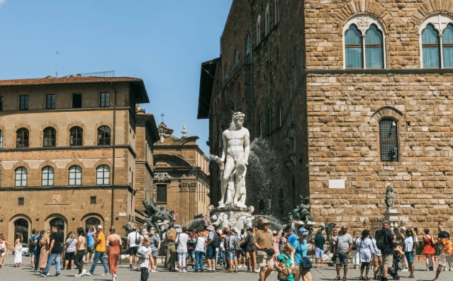 Një turiste ka dëmtuar një statujë kolosale mermeri në Firence pasi tentoi të ngjitej për të prekur organet gjenitale të saj për një shaka para dasmës. Ekspertët thanë se gruaja shkaktoi dëme me vlerë mijëra euro në shatërvanin e Neptunit në Piazza della Signoria.
