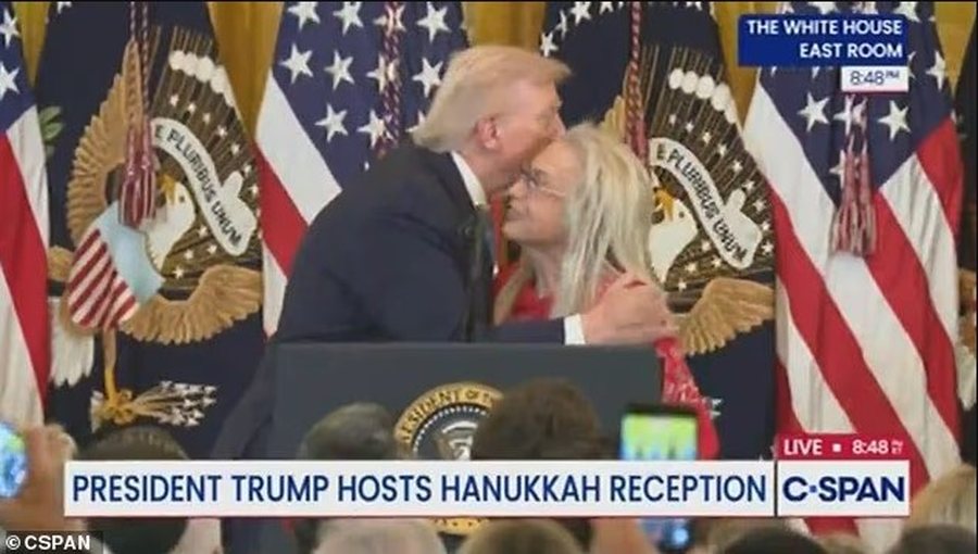Adelson, e cila ka dhuruar mbi 100 milionë dollarë për fushatat e Trump në ciklin e fundit zgjedhor, i tha presidentit duke i folur në vesh, se do t’i jepte edhe 250 milionë dollarë të tjera nëse do të mendonte seriozisht një kandidim të tretë. Më pas Trump kthehet nga publiku dhe thotë: “Ajo tha mendoje, do të të jap edhe 250 milionë dollarë të tjera”.
